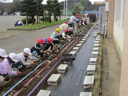 11月4日(水)、密集を避けるため、分担して、花壇整備と除草作業を行いました。1年生と6年生が花壇にパンジーの苗を植え、2~5年生が校庭の除草を行いました。みなさん、お疲れさまでした。明日も頑張りましょう