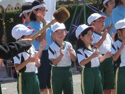 団長の声に合わせて団員の子供たちが手拍子を叩いています。