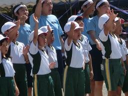 そして今度は白組の子供たちがそれに応えて応援をしています。