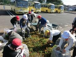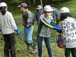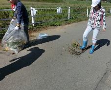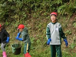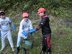 この子たちは土手の中のゴミを拾う仕事です。