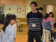 練習した後、先生の話を聞く子供たちです。先生はボランティアの先生です。