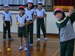 打つと結構跳びます。楽しそうにやっていた3年生と4年生でした。