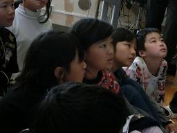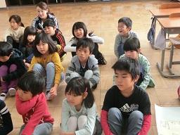 講師の先生の演奏を聴いている子供たちです。上の青い文字をクリックすると動画が見られます。