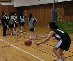 今日の4時間目の体育の様子です。体育館では女子がバスケットボールを練習していました。