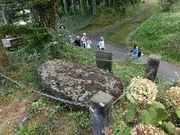 道標を見つけました。6年生が指さしをしてくれました。