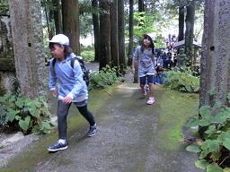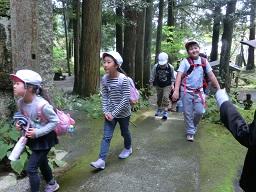 太鼓橋を渡り、境内に入ってくる子供たちです。