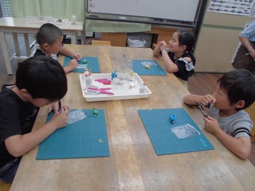 着いたら、はじめはおもしろ魚館の体験ゾーンで創作活動「まゆクラフト」の体験です。