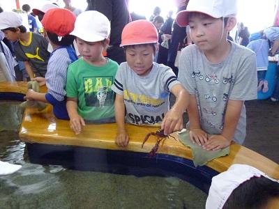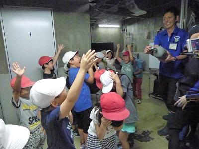 続いて、展示ゾーンに移動しての見学です。実際に生き物にさわれるコーナーがありました。
