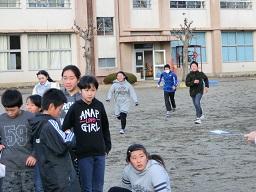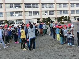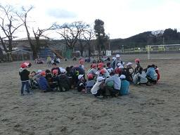 昨日の続きになります。校庭の真ん中に座った子供たちです。それぞれの場所に座っていますね。