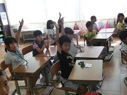 10/5 2年生English2 投稿日時 : 2017/10/05 泉小学校管理者 カテゴリ: 指名された子は、黒板に出てその形のカードをめくってみます。 問題は次々に出ます。 2年生English1.mp42年生English2.mp4一生懸命手を挙げる子供たちです。上の青い文字をクリックすると動画が見られます。 指名されて子が当たると拍手が起きました。 {{options.likeCount}} {{options.likeCount}}