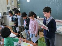この日はグループごとの工夫しながらの音読発表会です。「ふきのとう」早春らしいとてもいいお話ですね。