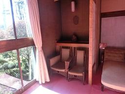 「こっちへ来てください。」とボランティアの方に案内されました。籐でできた二つの椅子が縁側にありました。