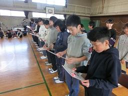 3/26 6年生送る会18 投稿日時 : 2018/03/26 泉小学校管理者 カテゴリ: 5年生が渡してくれたプレゼントです。在校生のなかよし班のみんなのコメントが書いてあるようです。 読んでいますね。前列の子どもたちです。そして後列の子どもたちです。 お礼の出し物として6年生が歌を下級生にプレゼントしました。 6年生1.mp46年生2.mp4「ひまわりの約束」です。上の青い文字をクリックすると動画が見られます {{options.likeCount}} {{options.likeCount}}