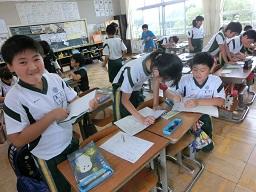7/2 5年生国語・後半 投稿日時 : 2017/07/02 泉小学校管理者 カテゴリ: 昨日の続きです。誰が書いたか分からない推薦文の良いところを見つけます。 いっぱい書いた子もいました。 良かった作品を大型テレビに映し出しました。そしてどこが発表していきます。授業の終わりには、みんなが見つけたことが発見となって黒板にまとめられました。自分たちで楽しみながらまとめた勉強でした。授業が終わってある子に「今日の勉強は面白かった?」と聞いたら「うん。」と答えが返ってきました。 {{options.likeCount}} {{options.likeCount}}