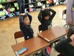 さて、この次はペアでゲームです。隣の人とペアを組みます。手を頭の上の置いてスタートです。