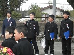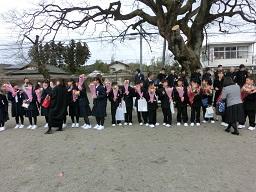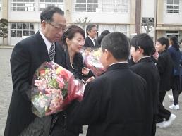 3/31 卒業式19(最終回) 投稿日時 : 2018/03/31 泉小学校管理者 カテゴリ: いろいろなグループで写真に収まります。野球部の後輩もプレゼントを持って来ました。 次にえのきの下でアルバム用の写真をカメラ屋さんが撮ります。 こんな感じで写真を撮りました。いいアルバムになることでしょう。最後に私たち職員に子どもたちから花束のプレゼントがありました。 どうもありがとう。元気でね。これでこのシリーズも終わります。長い間ご覧いただき、ありがとうございました。 {{options.likeCount}} {{options.likeCount}}