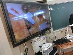今日の2時間目の4年生の算数の様子をお伝えします。テレビに映っているのは、紙でできている「形」です。先生は「この「形」の面積が知りたいな?」と話しています。