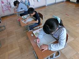 3年生は今日はかけ算九九です。最初ですから3分間で全部終わるのは難しかったようです。