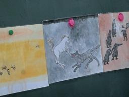 3/28 2年生研究授業8 投稿日時 : 2018/03/28 泉小学校管理者 カテゴリ: 最後のグループがこれから黒板に向かいます。そして全部の挿絵がつながりました。スーホがやられている所ですね。 つながったところの意見や自分の考えを話している子どもたちです。 先生は今度はプリントを配り始めました。この長くつながった(全部で10枚)の絵もみて、どんなお話なのかあらすじを4つの場面にします。 どんなことを書いているのでしょうか。 {{options.likeCount}} {{options.likeCount}}