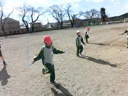 2/2 1,2年生体育 投稿日時 : 2017/02/02 泉小学校管理者 カテゴリ: 今日の3時間目の1年生と2年生の体育の様子です。 今日は外で縄跳びです。今個人で練習中。 駆け足跳びをやっています。 今度は後ろ跳びをやります。 今度は3人組で跳びます。回す人、跳ぶ人。先生がやり方を教えます。これから一斉に3人組になって楽しい縄跳びが始まりました。 {{options.likeCount}} {{options.likeCount}}