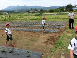 6/20 2年生トウモロコシ苗植え2 投稿日時 : 2017/06/20 泉小学校管理者 カテゴリ: 昨日の続きです。今度は水やりをするために水道に集まってきた2年生です。 植えたばかりは必ず水をたっぷりあげます。 1年生の時から使っているペットボトルの容器でめいめいが水やりをします。 こんな感じでトウモロコシが植えられました。これは爆裂種(ポップコーン)の苗です。 {{options.likeCount}} {{options.likeCount}}
