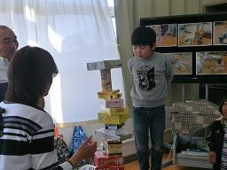 11/5 1年生研究授業8 投稿日時 : 2016/11/05 泉小学校管理者 カテゴリ: 1年生研究授業.mp4上にいくほど箱が小さくなっています。ここも下の箱は大きいですね。その様子は青い文字をクリックすると動画が見られます。 上にその箱乗せても大丈夫かな?結局倒れてしまいました。 何度も試しているという感じがします。そして子どもの手はとても慎重になっています。 写真を見ると分かりますね。慎重な様子が。 ここは、筒の形の箱を使っていますね。 {{options.likeCount}} {{options.likeCount}}