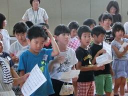 子供たちの大きな歌声も体育館に響きます。上の青い文字をクリックすると動画が見られます。