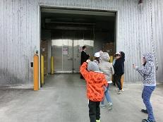 11/22 3年生工場見学2 投稿日時 : 2016/11/22 泉小学校管理者 カテゴリ: 「これからとっても寒い部屋に入ります。ジャンバーを来てください。」「はあい。」「暗いなあ。」 大型冷凍庫の扉が開きました。「すご!」 「ここに食べ物の材料が入っています。」「すごくさむ~~~~い。」 「あっ!」 あまり寒いので長くは入っていられません。外に出ました。 {{options.likeCount}} {{options.likeCount}}
