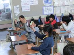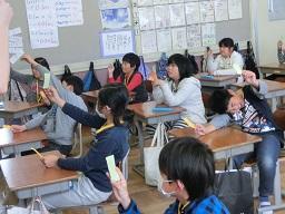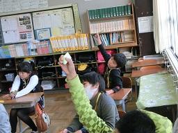 11/19 4年生English2 投稿日時 : 2016/11/19 泉小学校管理者 カテゴリ: 火曜日の4年生のEnglishの時間の続きです。 子どもがオレンジ色と緑色の札を持っていますが、これは飲み物か食べ物かを区別するために挙げています。 ALTの先生が言った食べ物が、飲み物だと思う人はオレンジ色、食べ物だと思う人は緑の札を上げます。 ALTの先生は英語だけで話しているのです。子ども達はよく聞いています。 {{options.likeCount}} {{options.likeCount}}