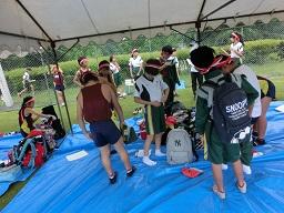 6/15 市陸上大会1 投稿日時 : 2017/06/15 泉小学校管理者 カテゴリ: 昨日の市小学校陸上競技大会の様子をこれからシリーズでお届けしていきます。 今日はその1回目です。テントの中で身支度をして開会式向かいます。お互いにはちまきをきりりと締めます。 テントから出た子ども達はラインを踏まないようにまたいでトラックを通ります。 朝8時20分ころの様子です。 {{options.likeCount}} {{options.likeCount}}