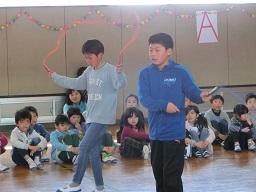 3/22 6年生送る会14 投稿日時 : 2018/03/22 泉小学校管理者 カテゴリ: 5年生の出し物は2つのパートに別れて一緒にやっています。合奏をするグループと縄跳びのグループです。 合奏曲は「黄色いサクランボ」です。この曲に合わせて、縄跳びをしました。 5年生1.mp45年生2.mp4上の青い文字をクリックすると動画が見られます。 こんな感じでやっています。6年生はうれしそうです。 {{options.likeCount}} {{options.likeCount}}