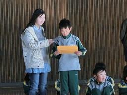 6年生は「漢字を頑張って勉強して検定に合格したいです。」次の1年生は「勉強をいっぱいしたいです。」と発表しました。