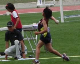 今度は6年女子ソフトボール投げの決勝です。