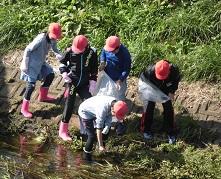 今日は晴れでとってもいい天気です。今日やることは①大江川の土手に植えたマリーゴールドを片付けること、②大江川の川の中にあるゴミを拾うことです。