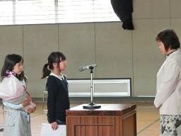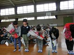 4/27 離任式2 投稿日時 : 2017/04/27 泉小学校管理者 カテゴリ: 各学年の代表者が整列してこれから前に出て行く場面です。 まず職員席に向かって礼をしてから行きます。 S先生には4年生の児童が作文を発表しました。遠足で一緒に行って楽しかったことも話の中に入れていました。 原稿を見ずに話しています。 発表が終わって、花束と手紙を渡しました。終わって礼をしています。 {{options.likeCount}} {{options.likeCount}}