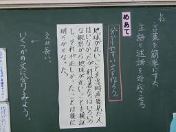 1/23 学校訪問8 投稿日時 : 2017/01/23 泉小学校管理者 カテゴリ: 昨日の続きです。2つのグループとも今ホワイトボードに書いています。 このグループも最後の文章のようです。さあ、黒板に貼りました。 後ろの先生方も見ています。この日の勉強のことが黒板に書いてあります。「言葉を簡単にする」「主語と述語を対応させる」そしてこの日の勉強のめあては「分かりやすい文を作ろう」です。 各グループがまとめた文を読みに来ています。自分の席だと遠いので見えないからですね。 {{options.likeCount}} {{options.likeCount}}