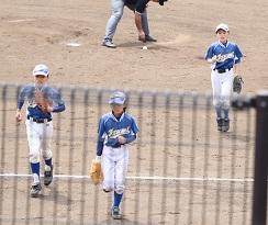 盗塁を2度決めてサードに達しました。続くバッターは6年生OR君です。R君はこの後、スクイズを見事に決めて1点を返し、2対2の同点に追いつきました。試合は振り出しになりました。