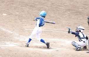 この回の最初のバッターは6年生WH君です。H君は1ボール2ストライクの後の4球目を打ちました。センター前にヒットです。H君、この日2本目のヒットです。