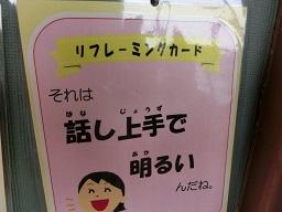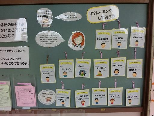 8/31 保健室掲示3 投稿日時 : 2017/08/31 泉小学校管理者 カテゴリ: 3回目の保健室掲示紹介です。今日はリフレーミングです。たくさんのカードが貼ってあります。 「おしゃべり」は「話し上手で明るい」 「おとなしい」は「おだやか・聞き上手」 「あきっぽい」は「いろいろなことに興味がある」。短所を長所に考えることも、他人を認めたり、いじめをなくしたりすることにつながりますね。 {{options.likeCount}} {{options.likeCount}}