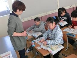 11/30 5年生English 投稿日時 : 2016/11/30 泉小学校管理者 カテゴリ: 火曜日の2時間目の5年生のEnglishの時間の様子です。 教科書を見ながらプリントに書いています。 これは教科書の単語を選んでプリントにまとめているのです。四角に区切られたのは学校の部屋を表しています。 そこの部屋に何があるのか書きます。音楽室ならPianoなどです。文字になれるように5年生も挑戦しています。早く終わった子は友達の所へ教えにいっています。 {{options.likeCount}} {{options.likeCount}}