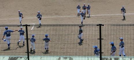 これは5回の守備を終わってベンチに帰る子ども達です。勝ちました。おめでとう。逆転勝利です。