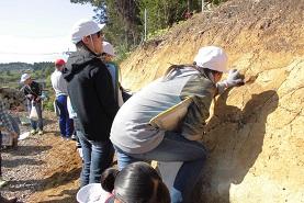 お世話になりました。子供たちはお土産をしっかり持っています。いま、理科室でじっくり持って帰った土や石を観察しています。