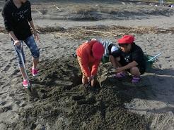 1/16 臨海自然教室23 投稿日時 : 2018/01/16 泉小学校管理者 カテゴリ: 2日目の午後の活動は浜辺での砂の造形活動です。最初に浜辺で自然の家の先生に活動の仕方や注意を教えてもらいました。 最初は、砂浜に穴を掘ります。穴掘り競争です。どれだけ砂浜に深く穴が掘れたかを競います。 グループごとにスコップを借りて交代で掘ったり、手で砂を掘り出してもかまいません。 ずいぶん掘りましたね。 {{options.likeCount}} {{options.likeCount}}