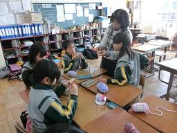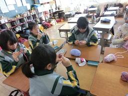 こっちのグループは手芸をしています。4年生ははじめて手芸に挑戦しているそうです。