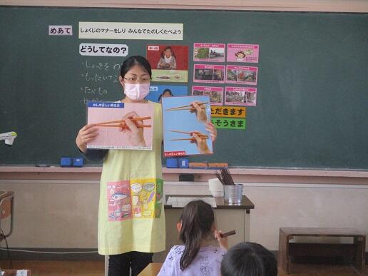 はしの持ち方などを教えていただきました。
