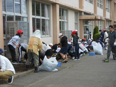 「ふれあいタイム」で、花壇整備を行いました。8つのなかよし班ごとに、パンジーやチューリップを抜き、雑草もきれいにとりました。コミュニティ・スクールの方々にもお手伝いいただいて、短時間できれいに整備することができました。夏の花壇への準備ができました。