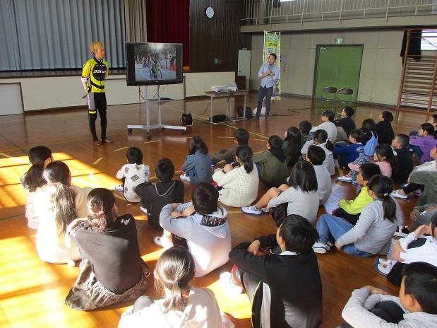 昨年に続き、今年も県内の自転車のプロチームの「那須ブラーゼン」からマネージャーと選手の二人が来校してくださいました。