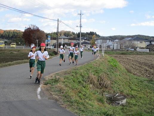 11月24日(水)、3校時に1・2・3・4年生が持久走大会のコースを試走