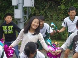 ゲームをしていました。先生が手拍子で英語の質問をします。順番に子供たちが答えます。