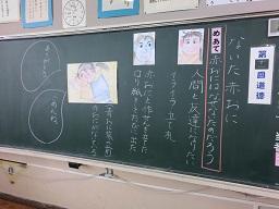 その意見を友達の前で発表します。赤鬼はなぜないたんだろう?むずかしい問題ですが、一生懸命考えました。